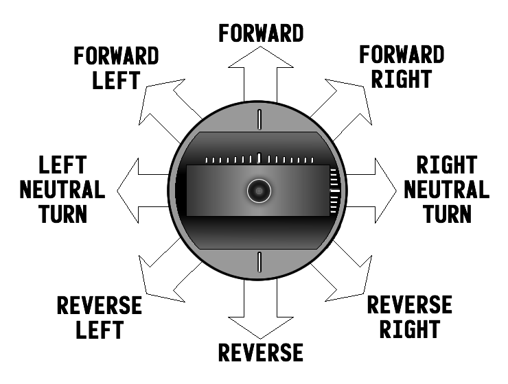 You can also not enter a neutral turn directly from forward or reverse movement. First you must come to a stop, and then move the steering stick left or right. Likewise, once you start a neutral turn you can not transition directly into forward or reverse movement - first come to a stop, and then move forward or reverse.